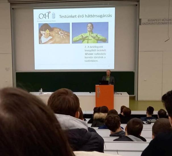 szükségességére, a lehetőségekre és a kihívásokra, problémákra igyekeztek felhívni a figyelmet. Nagy büszkeséggel töltött el minket, hogy az előadók között üdvözölhettük iskolánk egykori diákját, későbbi tanár kollégánkat Lázár Istvánt, aki az Országos Atomenergia Hivatalt képviselte „Sugárzó környezetünk” előadásával.