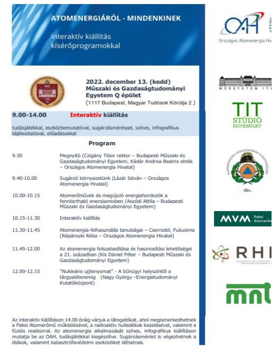 „ATOMENERGIÁRÓL MINDENKINEK” című interaktív kiállításon és előadássorozaton vettünk részt.