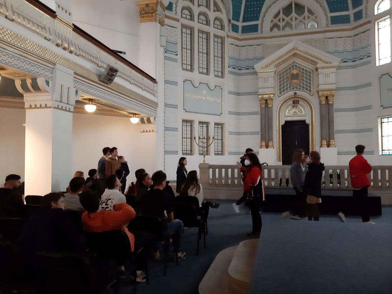 Április 22-én az Óbudai Gimnázium 11. évfolyamos történelem fakultációs csoportjai Hamvai tanárnő és Davidovics tanár úr szervezésével ellátogattak a Páva utcai Holokauszt Emlékközpontba és Zsinagógába a vészkorszak áldozataira emlékezve. A program során vezetést nem igényeltünk, a kiállításon Hamvai tanárnő szakszerű és minden kérdésre kiterjedő előadást tartott a holokauszt történetével kapcsolatban. A tervek között szerepel, hogy a tanév végén ugyanezzel a csoporttal ellátogassunk a Dohány utcai Zsinagógába is.