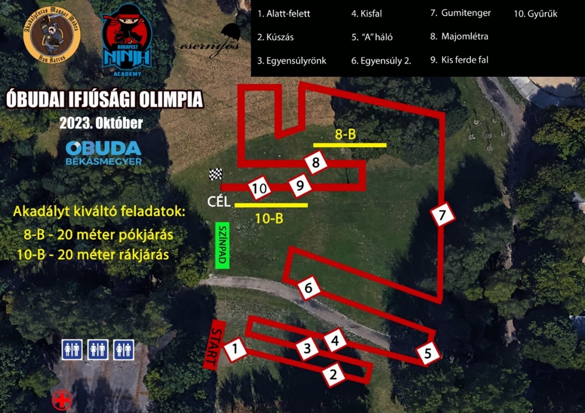 Az akadálypálya a képen látható útvonalon volt kialakítva. A futás nehezített volt, két alkalommal is szerepelt dombra felfutás benne.
