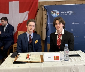 Husz Noel és Vámos Péter 12. B osztályos tanulók egy francia versenyen vettek részt. A verseny témája az energiaválság volt (francia nyelven!), egy OECD konferencia szimulációjával korunk égető energetikai kérdéseire keresték a megoldásokat. A fiúk egy képzeletbeli országot, Scandiát képviselték.